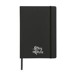 Notebook in A4 format with 96 sheets/196 pages of cream coloured, lined paper (80 g/m²). With a perfect binding, hard cover, elastic fastener and silk ribbon.